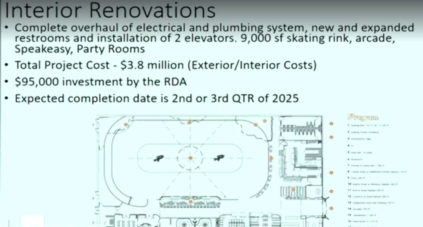 Documents on the roller rink indicate completion in winter of this year, but redevelopment agency staff said during the presentation the likely opening date will be in Spring of 2026.